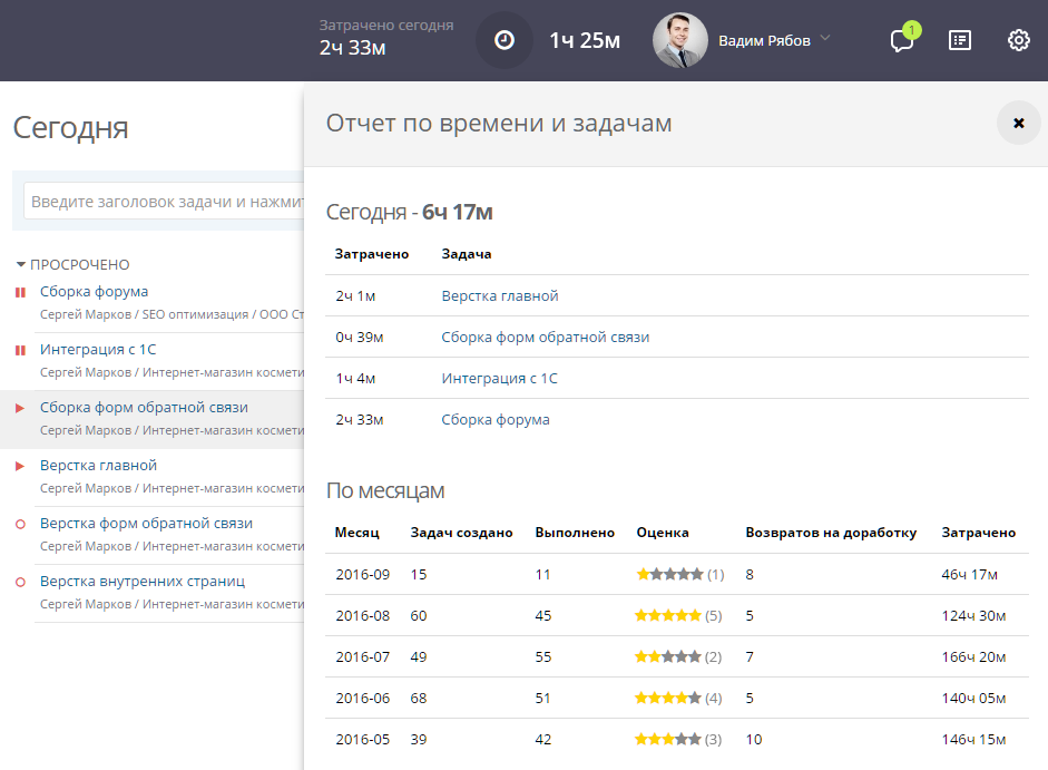 Полный контроль работы. На доске менеджеров вы сможете увидеть, кто перегружен, а кто сидит без дела. Это позволит вам отладить управленческие решения и обоснованно оценить работу сотрудников.